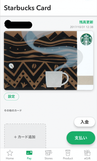 実物のスターバックスカードを店頭で受け取ることもできますが、私はスマホアプリのデジタルカードで支払いをしてます。この場合は実物のスターバックスカードは不要となります。