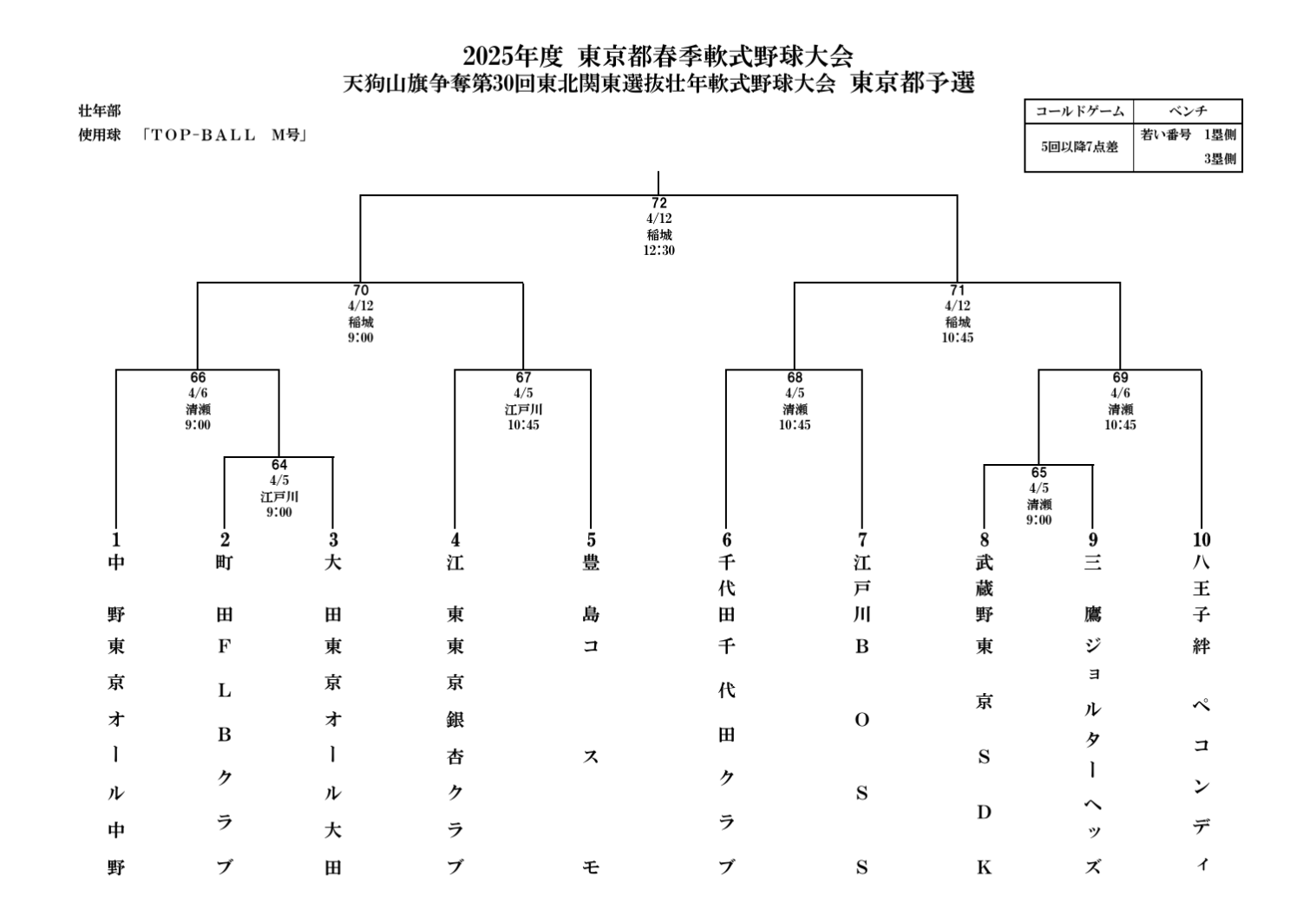 昨春の同大会で優勝したジョルターヘッズ(三鷹市)は、第1日第1試合で東京SDK(武蔵野市)との対戦が決定。