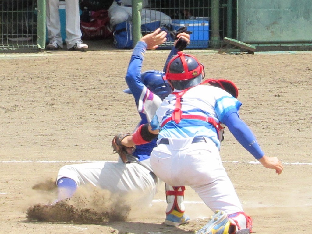 さらに5回、樋口、三辻の連打で再び好機を作ると、久保川が見事なエンドラン。同点に追いついた。